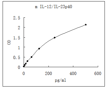 The mouse IL-12/IL-23p40 ELISA (Enzyme-Linked Immunosorbent Assay) kit is designed for detection of IL-12/IL-23p40 in mouse plasma, serum, and cell culture samples.This assay employs a quantitative sandwich enzyme immunoassay technique that measures mouse IL-12/IL-23p40 in approximately 3.5 hours. A polyclonal antibody specific form mouse IL-12/IL-23p40 has been pre-coated onto a 96-well microplate with removable strips. IL-12/IL-23p40 in standards and samples is sandwiched by the immobilized antibody and a biotinylated polyclonal antibody specific for mouse IL-12/IL-23p40, which is recognized by a streptavidin-peroxidase (SP) conjugate. All unbound material is washed away and a peroxidase enzyme substrate is added. The color development is stopped and the intensity of the color is measured.