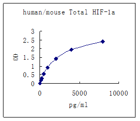 The Human/Mouse Total HIF-1α ELISA (Enzyme-Linked Immunosorbent Assay) kit is designed for detection of Total HIF-1α in human/mouse plasma, serum, and cell culture samples.This assay employs a quantitative sandwich enzyme immunoassay technique that measures Human/Mouse Total HIF-1α in approximately 3.5 hours. A polyclonal antibody specific for Human/Mouse Total HIF-1α has been pre-coated onto a 96-well microplate with removable strips. Total HIF-1α in standards and samples is sandwiched by the immobilized antibody and a biotinylated polyclonal antibody specific for Human/Mouse Total HIF-1α, which is recognized by a streptavidin-peroxidase (SP) conjugate. All unbound material is washed away and a peroxidase enzyme substrate is added. The color development is stopped and the intensity of the color is measured.
