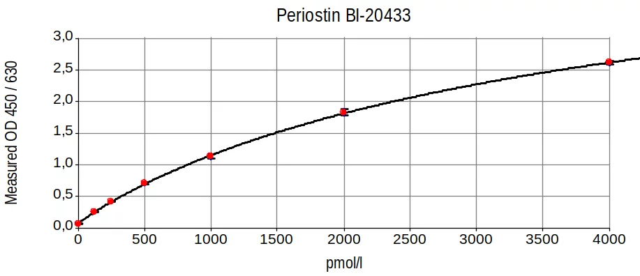 Periostin (OSF-2) is secreted as a 91 kDa homodimeric soluble extracellular matrix protein expressed in collagen-rich fibrous connective tissues. There are at least 7 isoforms of Periostin, caused by alternative splicing (http://www.uniprot.org/uniprot/Q15063).