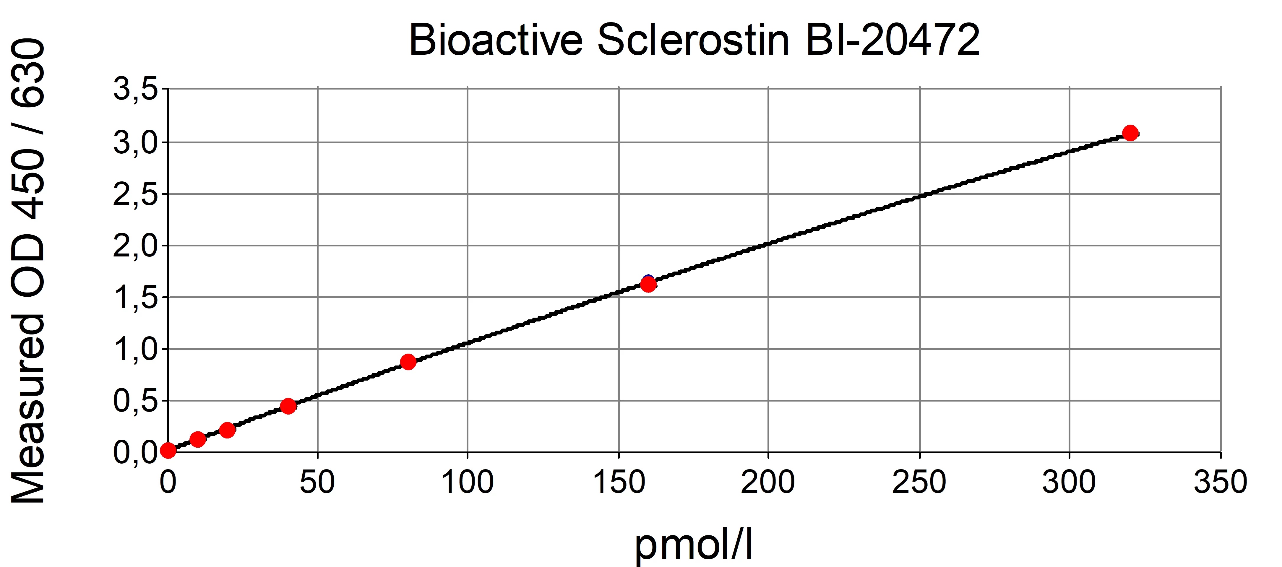 Sclerostin is a 22.5 kDa secreted glycoprotein that functions as a potent inhibitor of Wnt signaling. It acts by binding to the Wnt-coreceptor LRP5/6 thus inhibiting bone formation by regulating osteoblast function and promoting osteoblast apoptosis. The Sclerostin protein consists of two flexible N- and C-terminal arms and a cystine-knot with three loops, whereas the second loop binds to the LRP5/6 complex. Sclerostin is classically considered to be a monomeric protein, but data from Hernandez and colleagues (Hernandez et al., 2014) postulate that circulating sclerostin has a dimeric configuration. In addition, it is not yet well documented if also Sclerostin fragments circulate, but the comparison of different Sclerostin ELISAs suggest that fragments exist as well (Dallas et al., 2013).