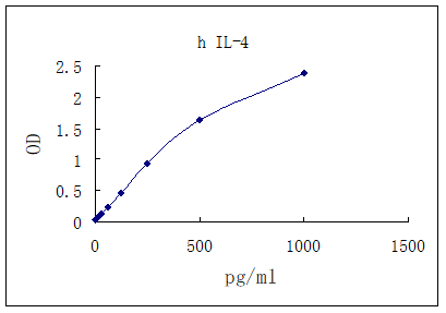 The Human IL-4 ELISA (Enzyme-Linked Immunosorbent Assay) kit is designed for detection of IL-4 in human plasma, serum, and cell culture samples.This assay employs a quantitative sandwich enzyme immunoassay technique that measures human IL-4 in approximately 3.5 hours. A polyclonal antibody specific for human IL-4 has been pre-coated onto a 96-well microplate with removable strips. IL-4 in standards and samples is sandwiched by the immobilized antibody and a biotinylated polyclonal antibody specific for human IL-4, which is recognized by a streptavidin-peroxidase (SP) conjugate. All unbound material is washed away and a peroxidase enzyme substrate is added. The color development is stopped and the intensity of the color is measured.