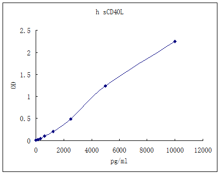 The Human sCD40L ELISA (Enzyme-Linked Immunosorbent Assay) kit is designed for detection of sCD40L in human plasma, serum, and cell culture samples.This assay employs a quantitative sandwich enzyme immunoassay technique that measures human sCD40L in approximately 3 hours. A polyclonal antibody specific for human sCD40L has been pre-coated onto a 96-well microplate with removable strips. sCD40L in standards and samples is sandwiched by the immobilized antibody and a biotinylated polyclonal antibody specific for human sCD40L, which is recognized by a streptavidin-peroxidase (SP) conjugate. All unbound material is washed away and a peroxidase enzyme substrate is added. The color development is stopped and the intensity of the color is measured.