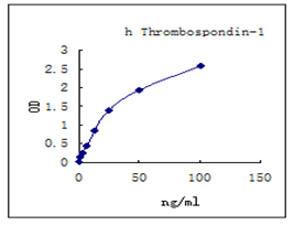 The Human thrombospondin-1 ELISA (Enzyme-Linked Immunosorbent Assay) kit is designed for detection of thrombospondin-1 in human plasma, serum, and cell culture samples.This assay employs a quantitative sandwich enzyme immunoassay technique that measures human thrombospondin-1 in approximately 3.5 hours. A polyclonal antibody specific for human thrombospondin-1 has been pre-coated onto a 96-well microplate with removable strips. thrombospondin-1 in standards and samples is sandwiched by the immobilized antibody and a biotinylated polyclonal antibody specific for human thrombospondin-1, which is recognized by a streptavidin-peroxidase (SP) conjugate. All unbound material is washed away and a peroxidase enzyme substrate is added. The color development is stopped and the intensity of the color is measured.