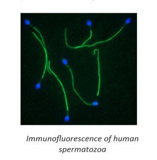 This antibody was produced from a mouse hybridoma resulting from a mouse immunized with a peptide covering the prodomain of human AKAP4 protein sequence (Uniprot ref. Q5JQC9) which is 70% homologous between mammals. The anti-pro AKAP4 (clone 6F12) antibody epitope is 100% homologous between mammals.