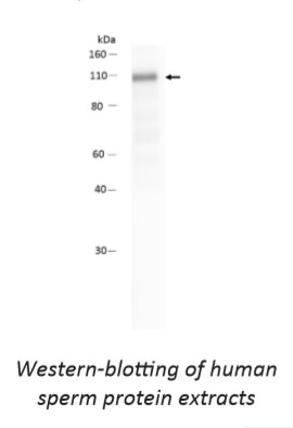 Determined by its ability to recognise the prodomain of human AKAP4 protein. This monoclonal antibody (clone 6F12) only recognizes the pro-form of AKAP4 (110 kDa / 854 AA), the prodomain (21 kDa) and does not react with the AKAP4 (82 kDa / 665 AA). It reacts also with AKAP4 proteins from horse, bull, mouse, rat and ram semens.Human AKAP4 (A-Kinase Anchor Protein 4) protein is encoded by a single gene located on chromosome X. The proAKAP4 (854 amino acids) is processed into mature AKAP4 by proteolytic cleavage of the amino-terminal prodomain made of 188 amino acids. AKAP4 and its precursor proAKAP4, are major components of the pig, horse, bull, mouse, rat, ram, dog, rabbit and human sperm fibrous sheath of the sperm flagellum. AKAP4 protein belongs to the family of A-kinase anchor proteins (AKAPs) all sharing a common function of binding to the regulatory subunit of protein kinase A (PKA) and confining the PKA holoenzyme to discrete locations within the cell. AKAP4 is also named AKAP-4, AKAP82 (A-Kinase Anchor Protein 82 KDa), PRKA4 (Protein Kinase A Anchoring Protein 4), HI, CT99 (Cancer/Testis Antigen 99), FSC1 (Fibrous sheath component 1) or P82. AKAP4 plays a major role in sperm motility and capacitation (Miki et al. 2002), that are both essential for oocyte fertilization.