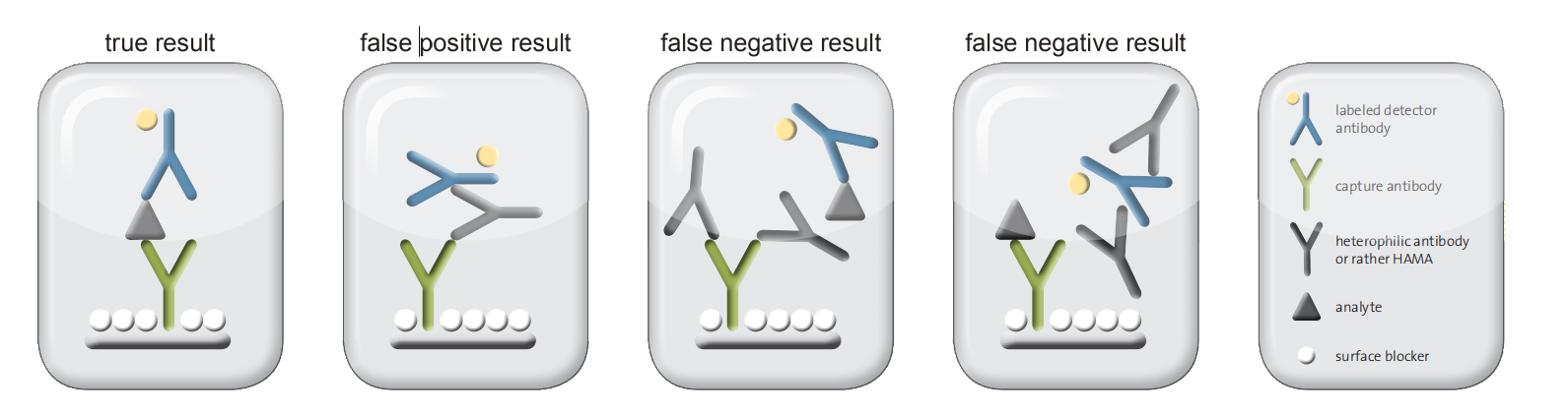 Figure 1: Interfering antibodies, like HAMA or rheumatoid factors, can result in false positives or false negatives